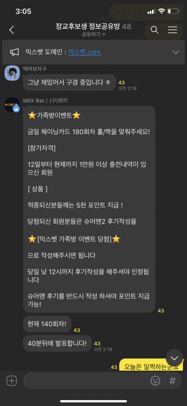 가족방도 엄청 화목합니다 여태 배팅하면서 이정도로 화목한방