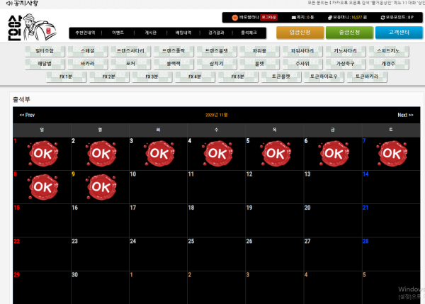 매일 하루에 만원 입금후 배팅하면 출석체크 인정!!