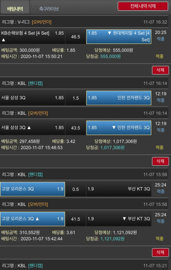 어제 배구부터 농구까지 운이좋았어요