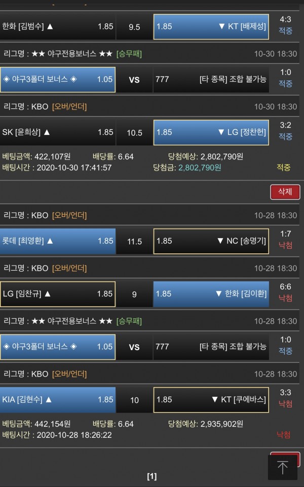 오늘 딱 3경기 있어서 오랜만에 배팅하고갑니다
