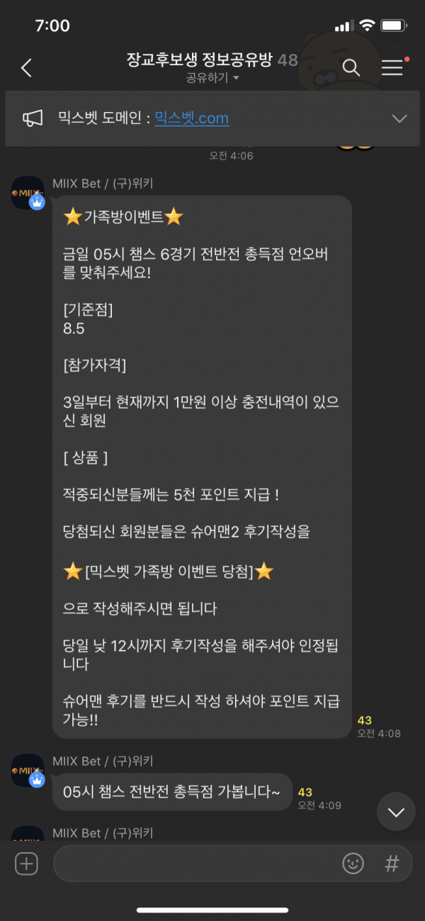 믹스벳 가족방이벤트 당첨을 축하드립니다!