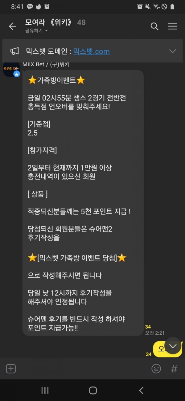 믹스뱃 가족방 이벤트당첨 후기