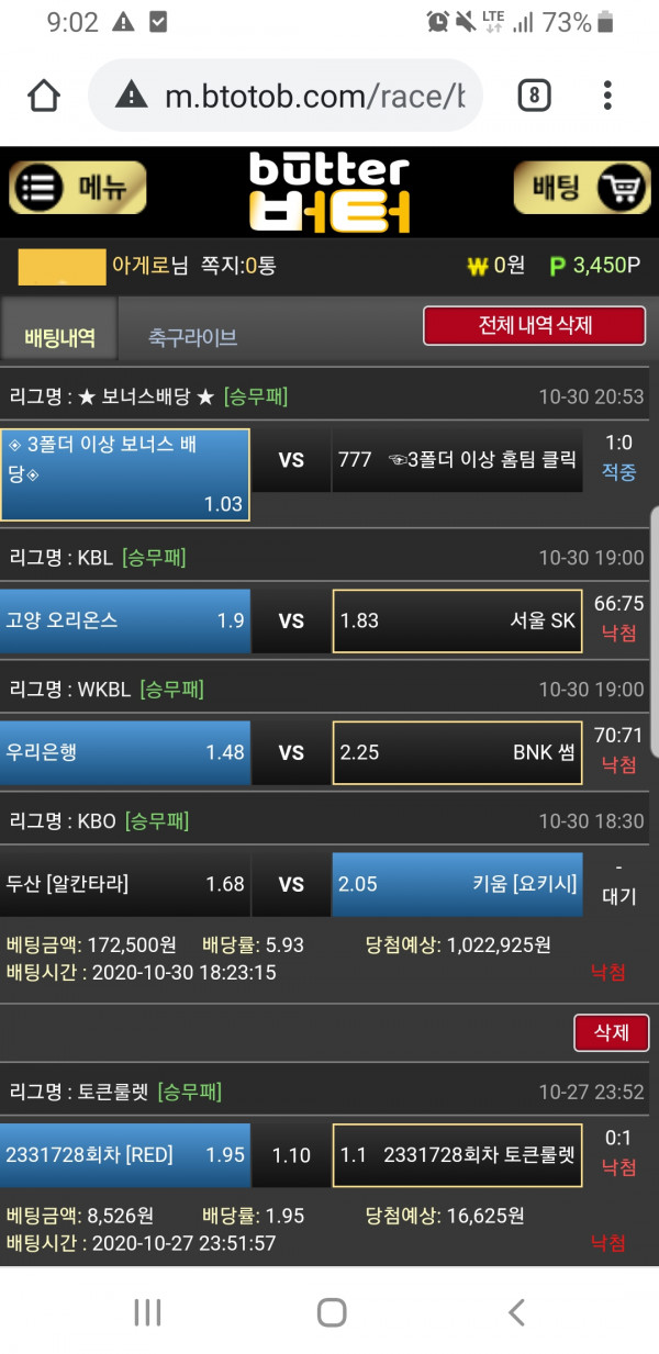 ㅜㅜ 오랜만에국내경ㄱㅣ 승부인데ㅋㅋ 3개다반대네요 20점이상농구도지고 한폴보다이게나은거죠 뭐 내일부터 주말들어가는데 놀러들오셔서 버터서 배팅하자구용 버터화이팅