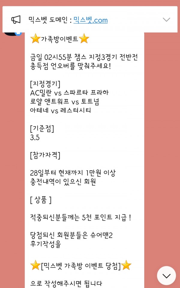 믹스벳 가족방 이벤트 당첨을 축하드립니다
