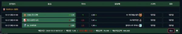 아까 배팅해둔 축구경기 순항중이네요ㅎㅎ