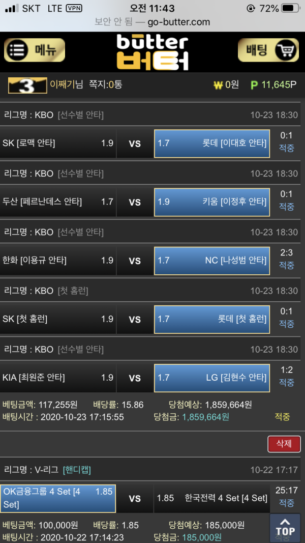 선수별 안타 첫홈런 맞추기로 먹었네요 ㅋㅋ