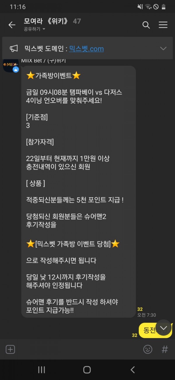 믹스벳 가족방이벤트 당첨을 축하드립니다!