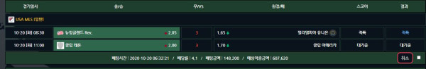 오버 역배 2폴 배팅했는데 하나는 적특 남은거는