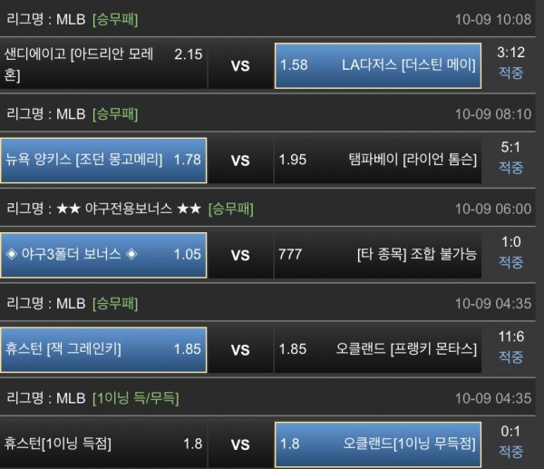 오늘 mlb올정배날이네요 깔끔하내요 오늘