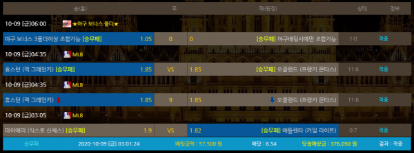 오전에 진행되었던 MLB 경기 적중 축하드립니다.
