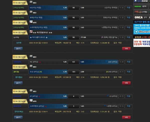 연휴끝나고 바빠서 오랜만에 배팅했는데