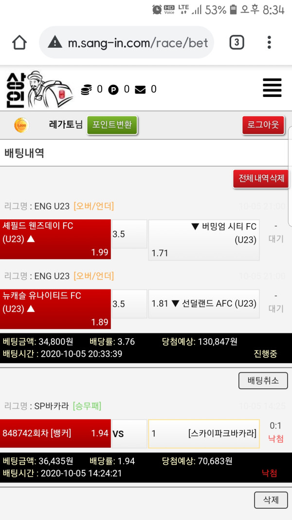 오늘은 경기가 얼마 없어서 괜히 바카라 건드렸다가 사망했네요ㅋㅋ