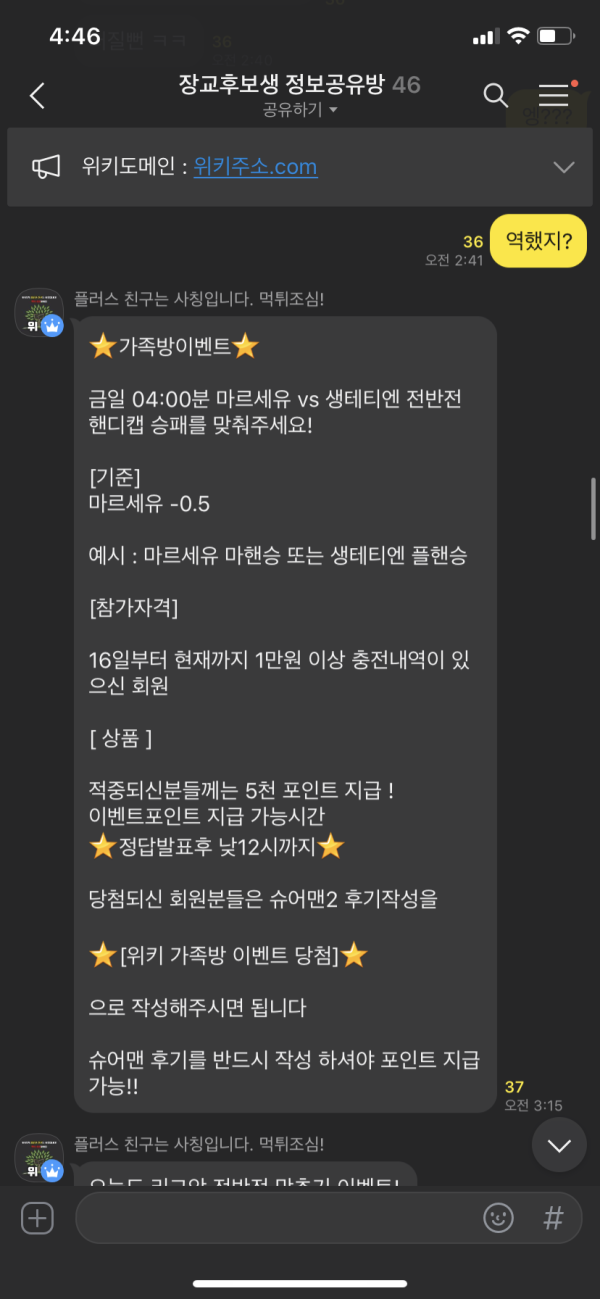 오늘 가족방 새벽이벤트는 마르세유랑 생테티엔 전반 핸디!