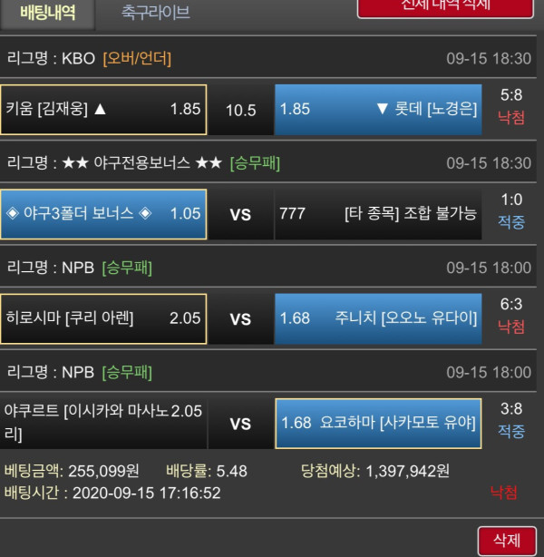 어제 야구