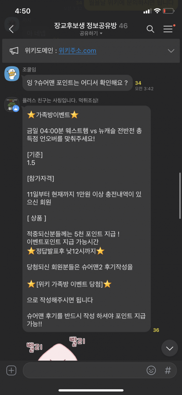 오늘도 위키 가족방 이벤트 당첨을 축하드립니다!
