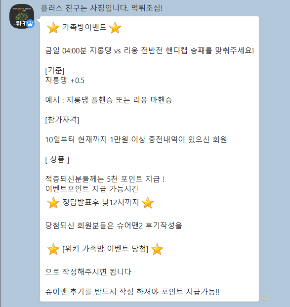 위키 가족방이벤트 당첨을 축하드립니다~