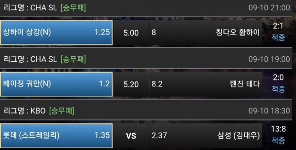롯데가 기적적으로 역전해줘서 먹었네요