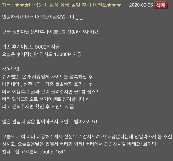 솔직히 버터만큼 잘챙겨주는곳도없죠