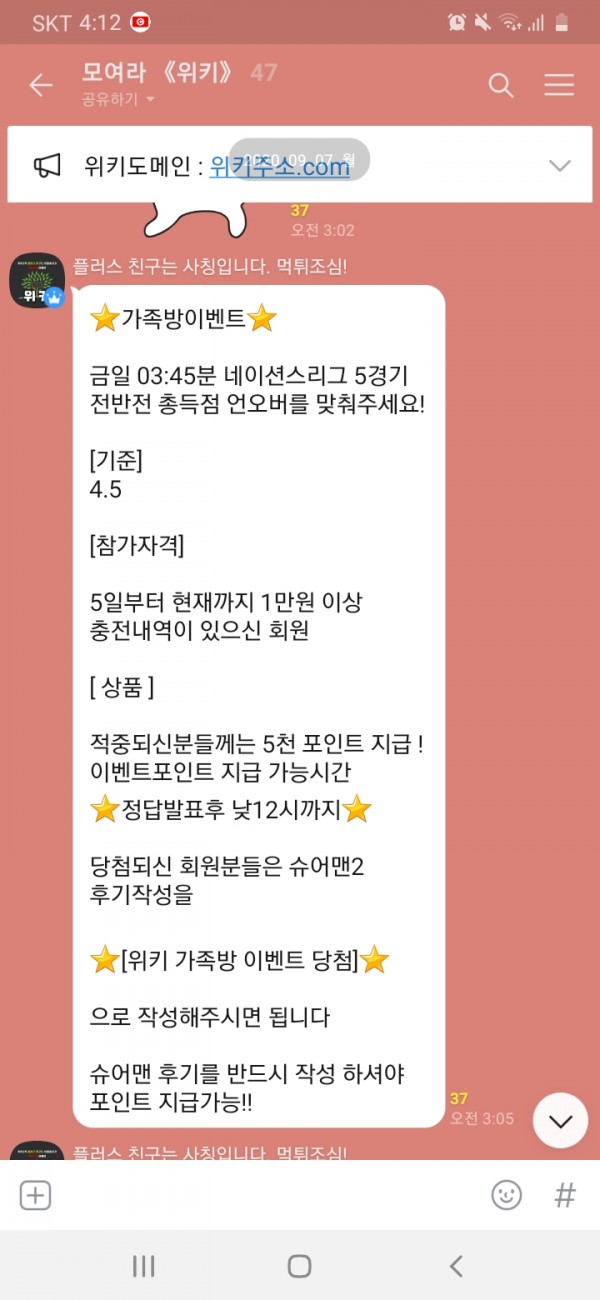 위키 가족방 이벤트당첨 후기