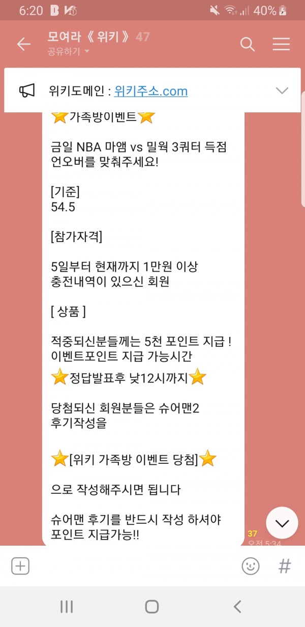 오늘도 역시 가족방 이벤트를 해주시는 위키!!