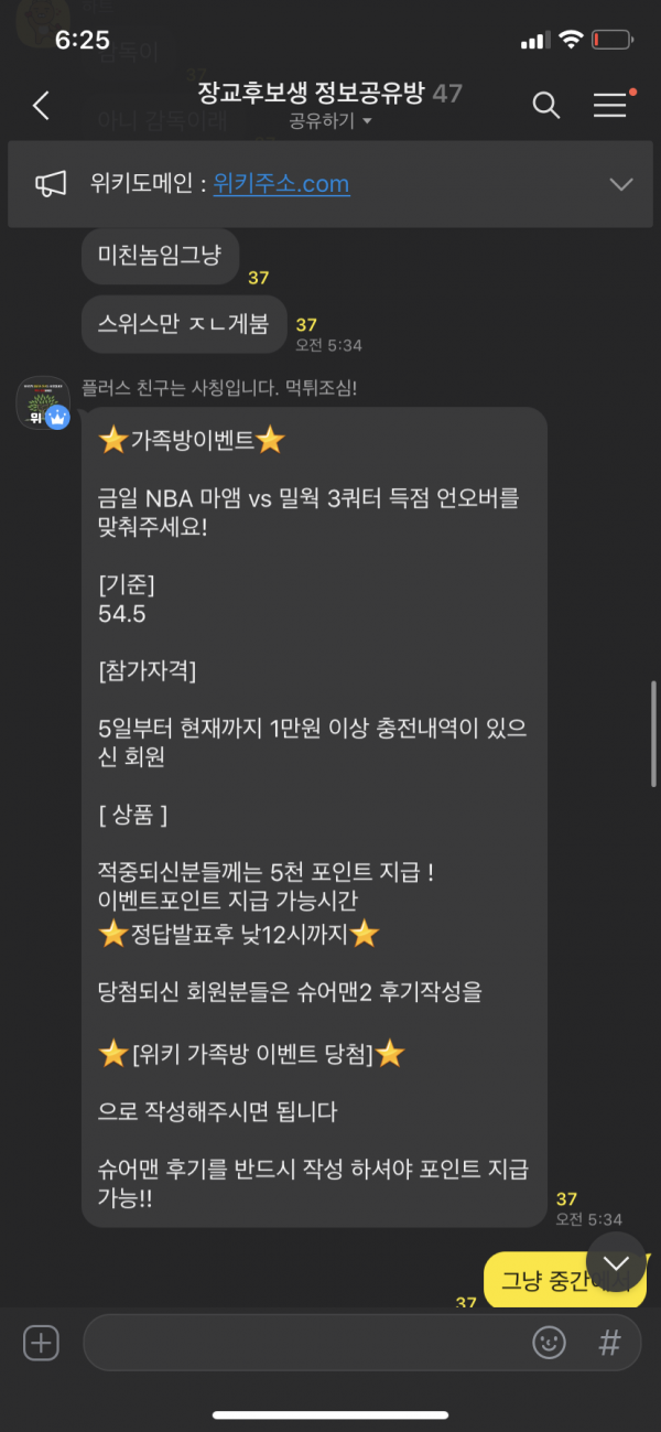 여러 돌발이벤트 할때도 가족방이라 혜택 받기도 하니