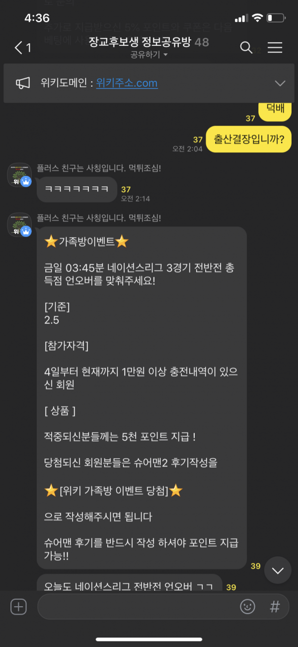 매일매일 진행되는 위키 가족방 이벤트!