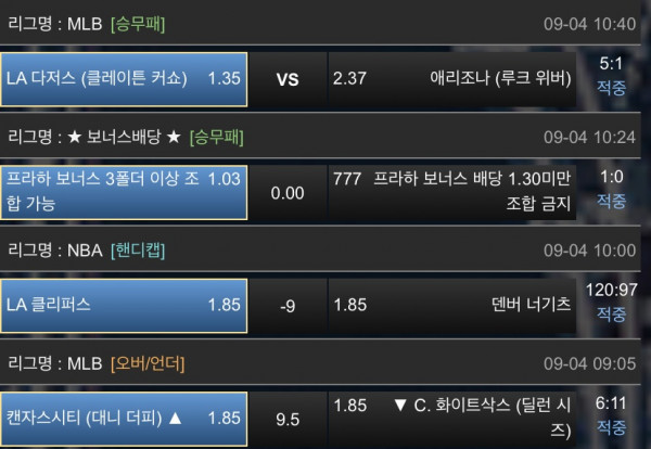 오늘 9월4일 믈브 적중 ㅅ ㅅ ㅅ