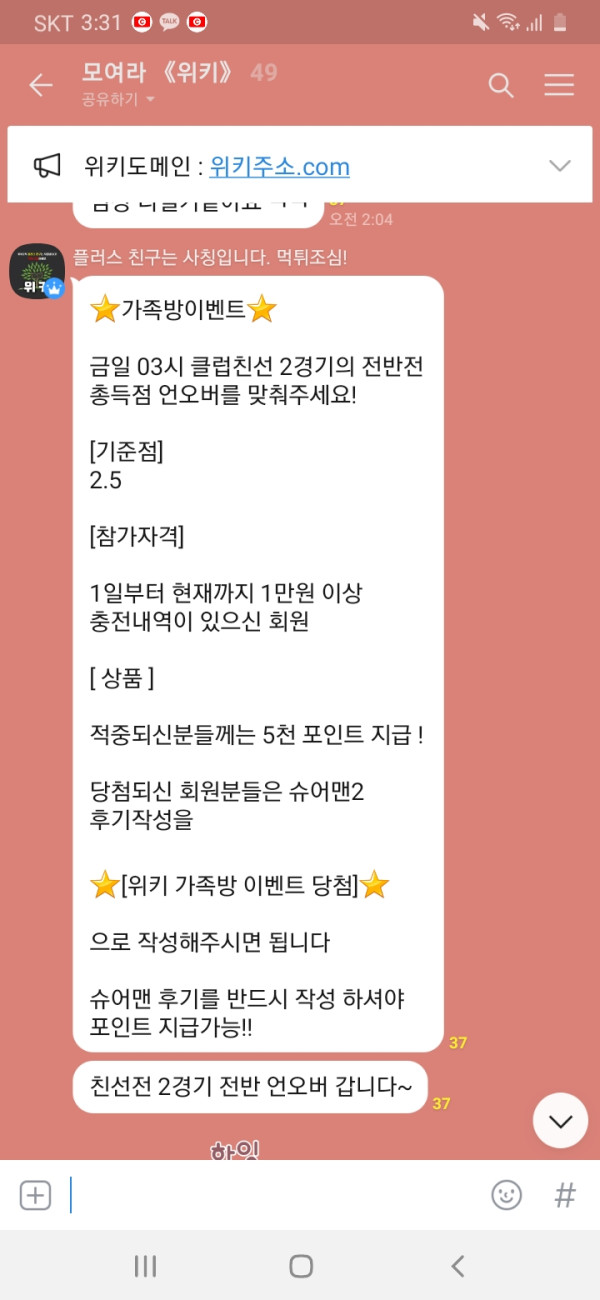 위키 가족방 이벤트당첨 후기