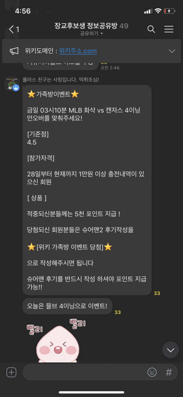 오늘도 가족방이벤트 걸어주셔서 감사합니다 항상 새벽을 책임지심 ㅋㅋ