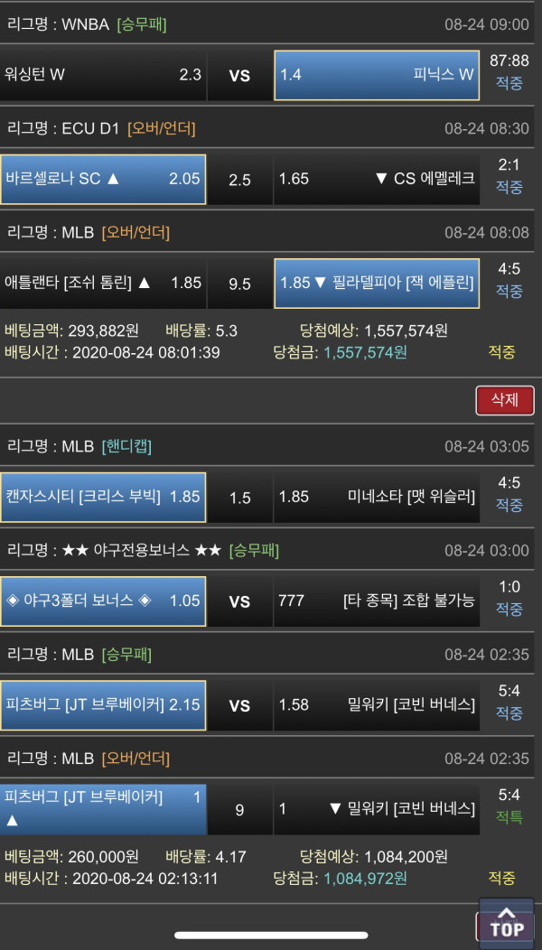 당첨 배팅내역 공개합니다 ㅋㅋ