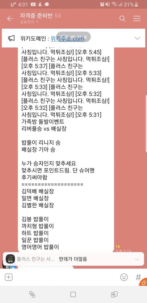 위키 가족방에서 재밌는 이벤트 많이 합니다