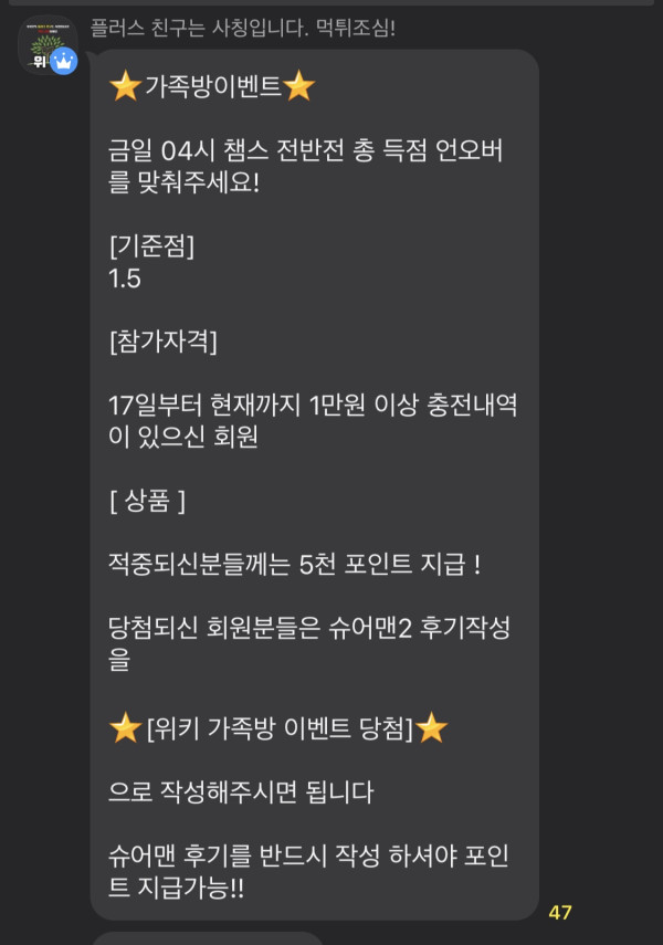 오늘도 위키 가족방 이벤트 당첨을 축하드립니다!