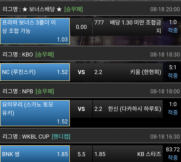 일본야구와 국내야구조합 기가 막힌 적중 축하드립니다!!