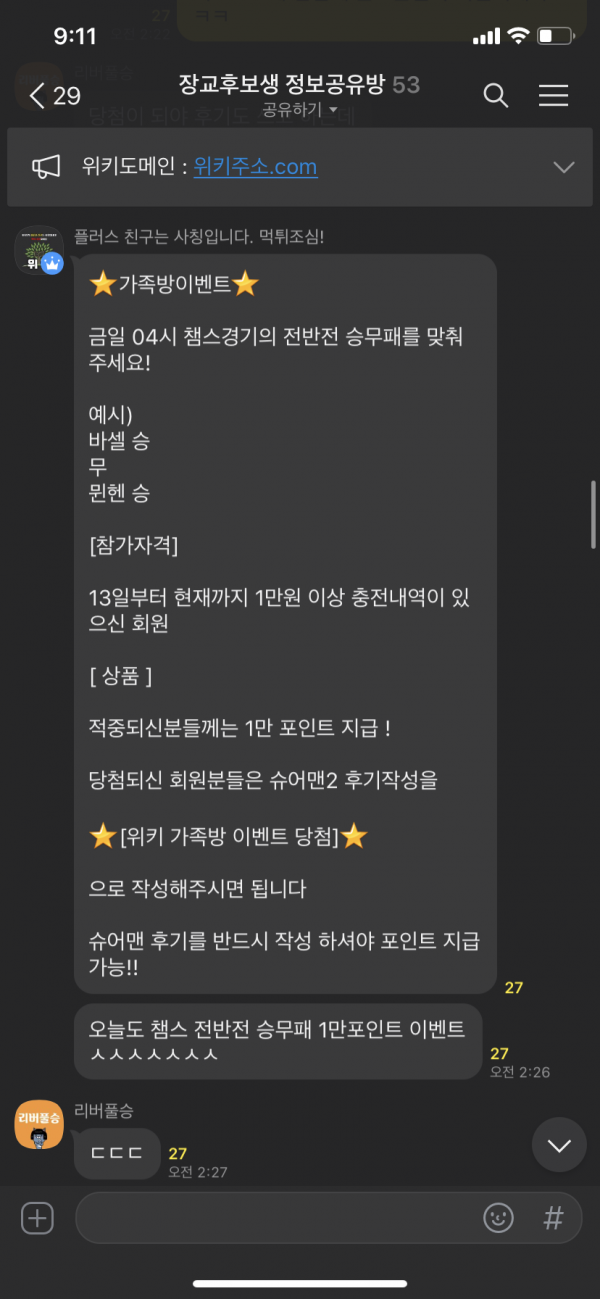 가족방 이벤트 당첨 축하드리며 이번주말에도
