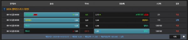 내일은 바셀 대 뮌헨 빅매치 있던데 다시 배팅해서 적중도전합니다!