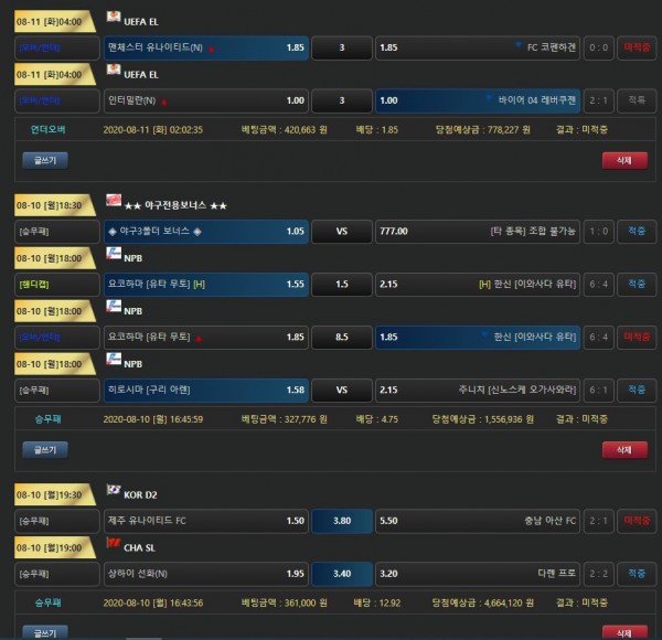 예 버터를 이용한지 곧 2년이 돼가네요 항상 유저를 먼저 생각하는 그런사이트구요 이벤트도 많이 한답니다. 이리저리 방방 안돌아다니고 정착하게 배팅할수있어서 기분은좋네요 다들 건승~~~!