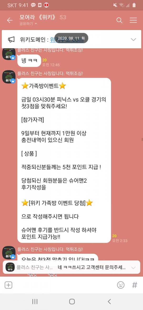 아침에 일어나서 맞춘거알았는데 얼ㄹ른 후기쓰고 포인트받으시라고 재촉하는위키 ㅋㅋㅋㅋㅋ포인트주려고 안달나셨어요 다들위키같이이용하고 같이 배팅하고 같이적중하고 같이환전해요 진짜최고에요 제가 장담합니다 제발위키이용하세요 꽁포인트가너무많아요ㅠㅠ