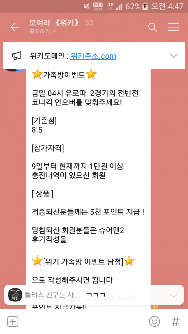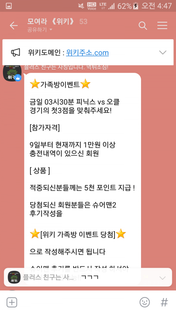 위키 가족방이벤트 당첨을 축하드리며 내일도