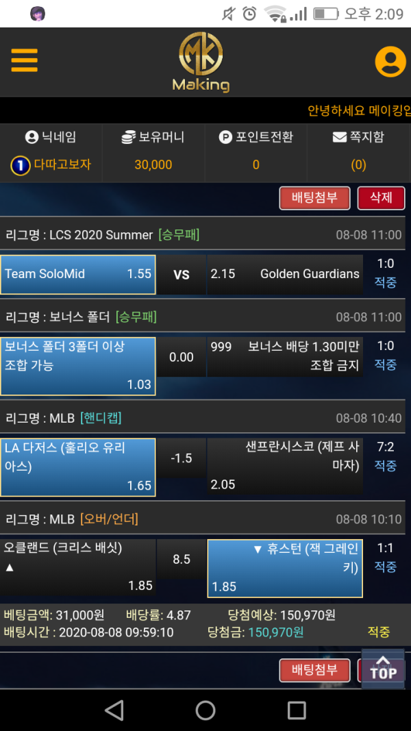 LCS 와 믈브 조합 적중이시라니 대단하시네요!!