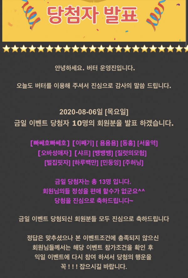 비가 많이오는데 버터운영진분들 화이팅하세요^^