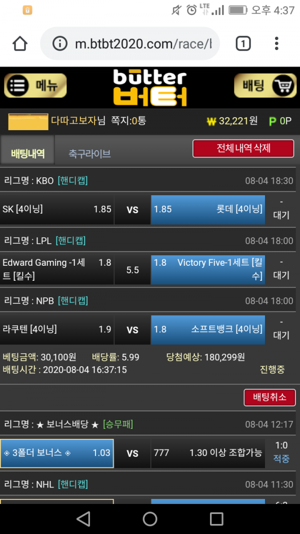 위키 오전경기 배팅후기