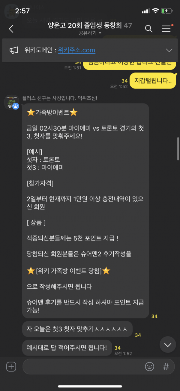 오늘도 위키 가족방 후기 ㅆㅆㅆ :)