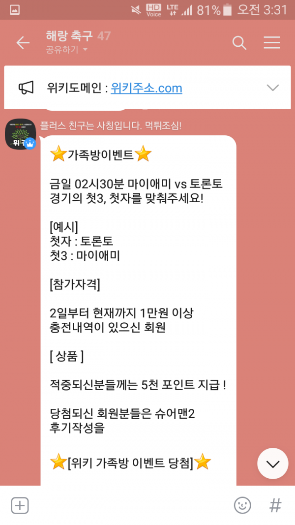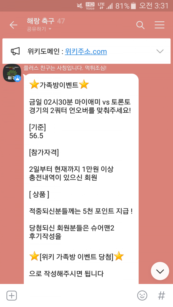 가족방이벤트머니 받으시고 스포츠까지 적중하셨기를 바랍니다ㅎㅎ