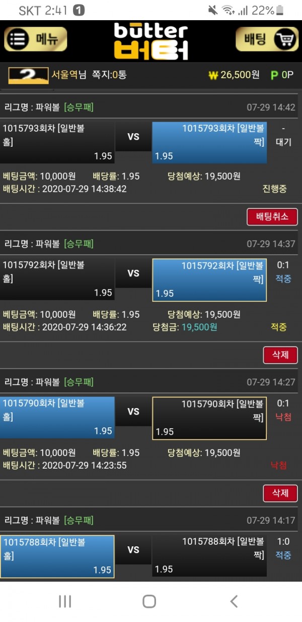 버터 오늘의배팅