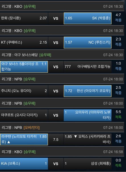 와우 오늘 일본야구와 국내야구 다섯폴더 적중을 축하드립니다!!
