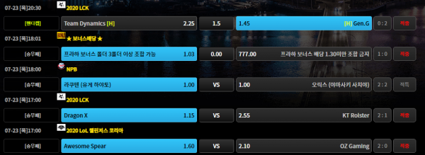 그래도 다른 배팅들 모두 적중시켰으니 축하드립니다!!