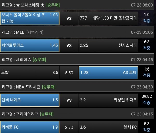 새벽에 운좋게도 축구,야구,농구 섞어서 먹었네요