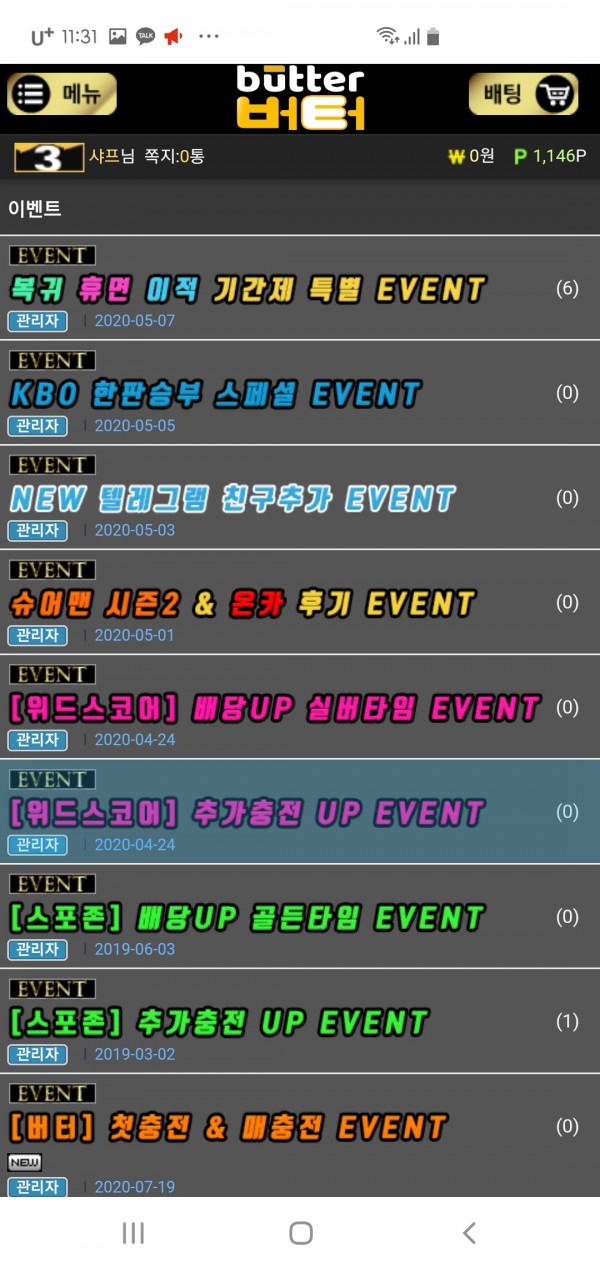 버터는 배당이 다른곳보다 현저히 높아서 돈을 따는맛이 쏠쏠합니다