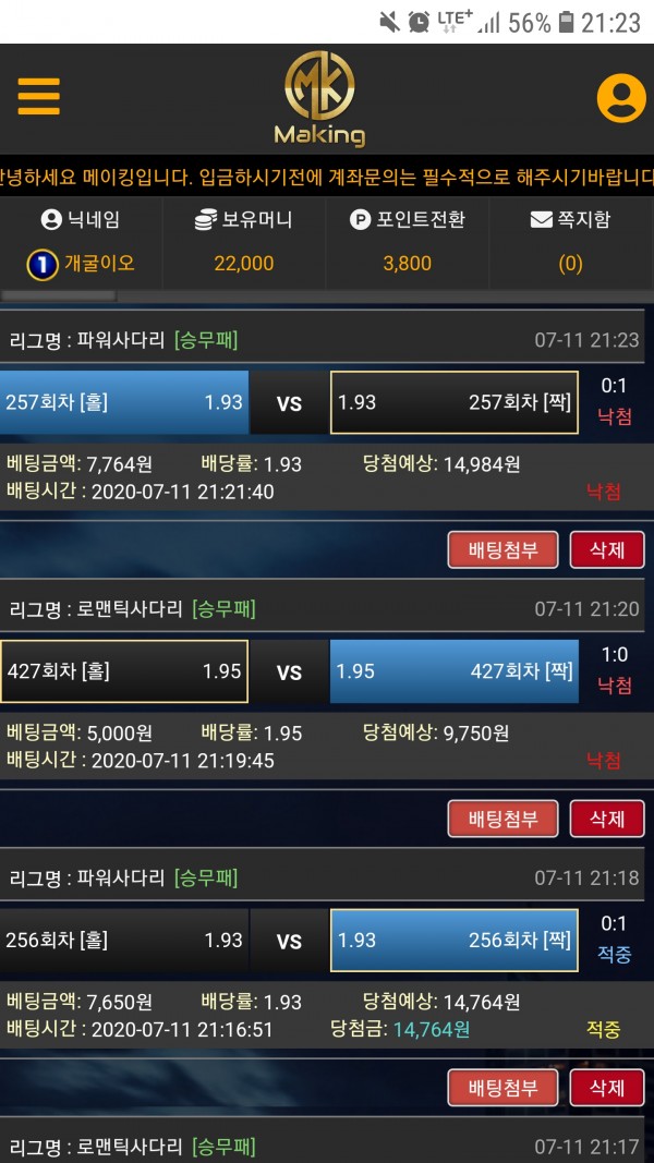 다음 사다리는 꼭 연승 타시길 빌겠습니다. ㅎㅎ