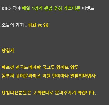 위키 KBO 치킨 기프티콘 당첨을 축하드립니다!